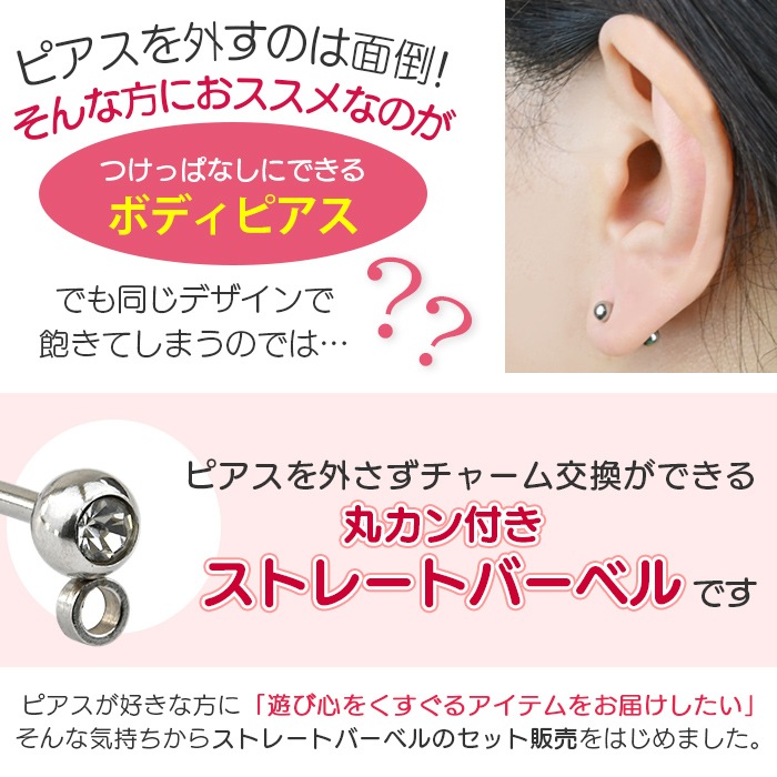 ボディピアス 14g 16g 18g チャーム 耳たぶ ピアス スワロフスキー 軟骨ピアス 軟骨 耳用 イヤー ロブ 軟骨用 トラガス ヘリックス 金属アレルギー対応 サージカルステンレス シルバー ゴールド ストレートバーベル p03-18