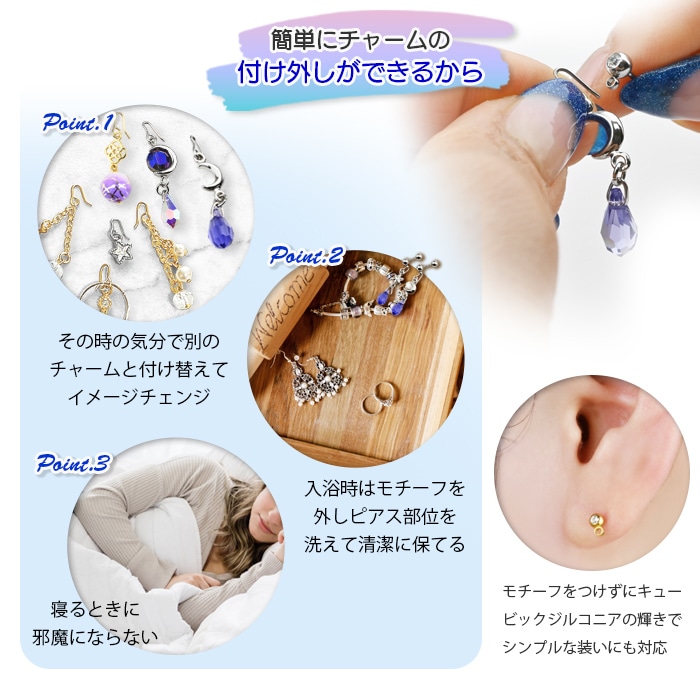 ピアス サージカルステンレス 金属アレルギー対応 お守り レディース つけっぱなし 8色展開 内径調整可 幸運 開運 耳たぶ ファーストピアス 軟骨OK キュービックジルコニア 小さい 小さめ セット かわいい ギフト【両耳用・2個売り】 e11-01