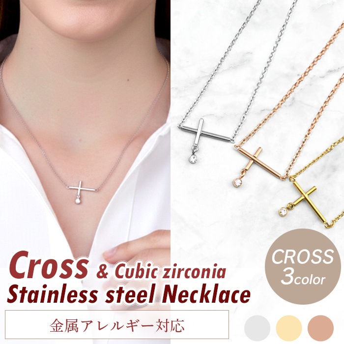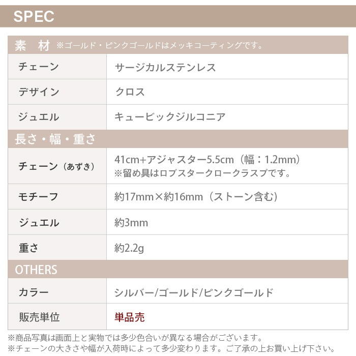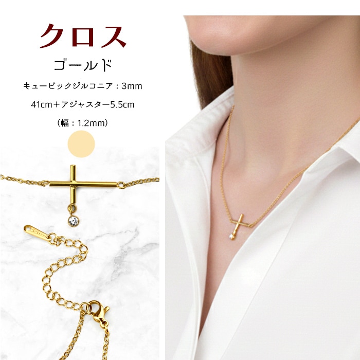 ネックレス キュービックジルコニア サージカルステンレス 付けっぱなし 金属アレルギー対応 ゴールド シルバー あずきチェーン アジャスター付き 40cm ne01-8