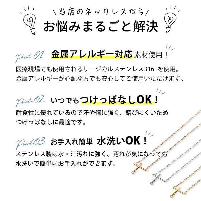 ネックレス チェーン ステンレス 馬蹄 サージカルステンレス 付けっぱなし 金属アレルギー対応 ゴールド シルバー ピンクゴールド あずきチェーン アジャスター付き 42cm ne01-2