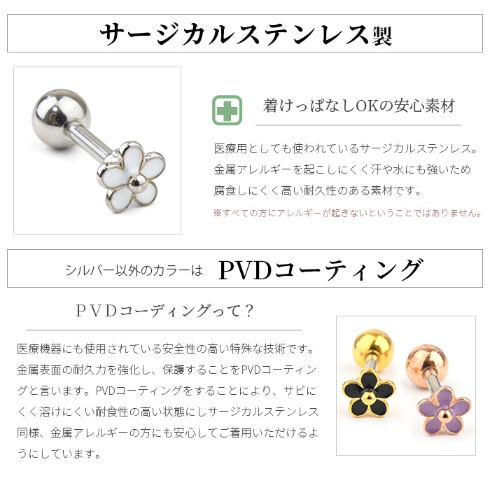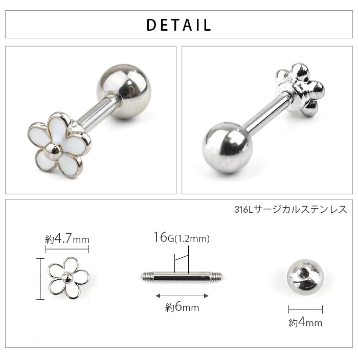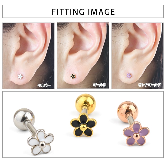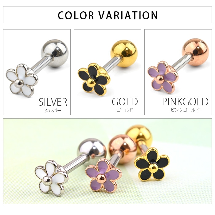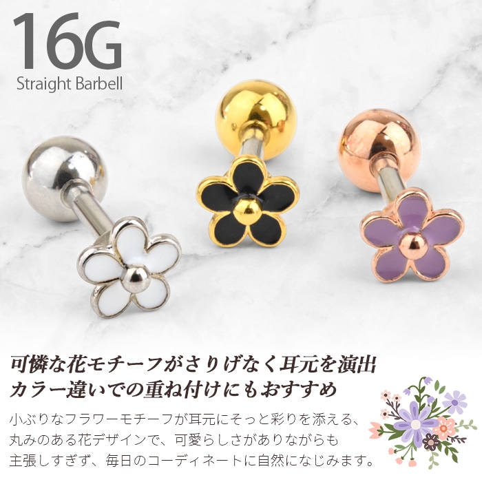軟骨 ピアス ボディピアス 16g 16ゲージ サージカルステンレス イヤーカフ イヤーカフ風 花 フラワー ストレートバーベル 金属アレルギー対応 軟骨用 耳たぶ 軟骨ピアス 耳用 イヤー ロブ イヤカフ風 トラガス ヘリックス シルバー ゴールド ストレートバーベル e03-58