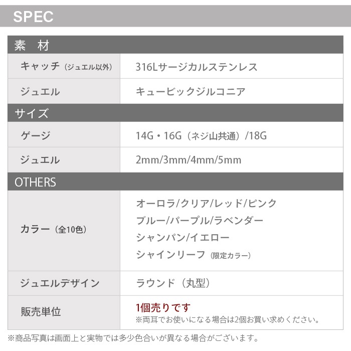 ▼ 下記商品リストからご希望の商品をお選びください。カラー x ゲージ×ジュエルサイズ