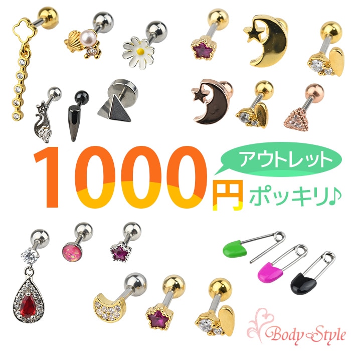 【アウトレット】1000円ポッキリ ボディピアス 16G ジュエル 花 月 星 フラワー ムーン スター クラウン アニマル かわいい 1000円均一 k03-3set