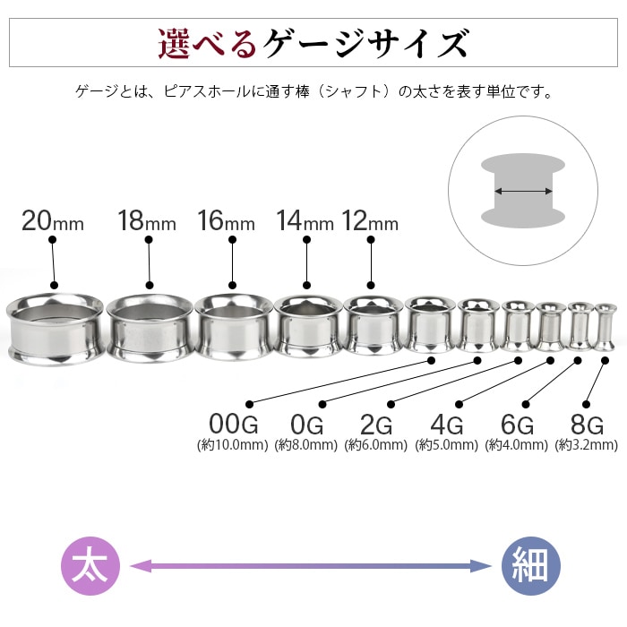 ボディピアス プラグ ジュエル 14mm 12mm 00G 0G 2G 4G 6G 8G 10G 12G 14G 医療用 サージカルステンレス 拡張 ラージホール ホールトゥ イヤーロブ メンズ レディース おしゃれ e08-36