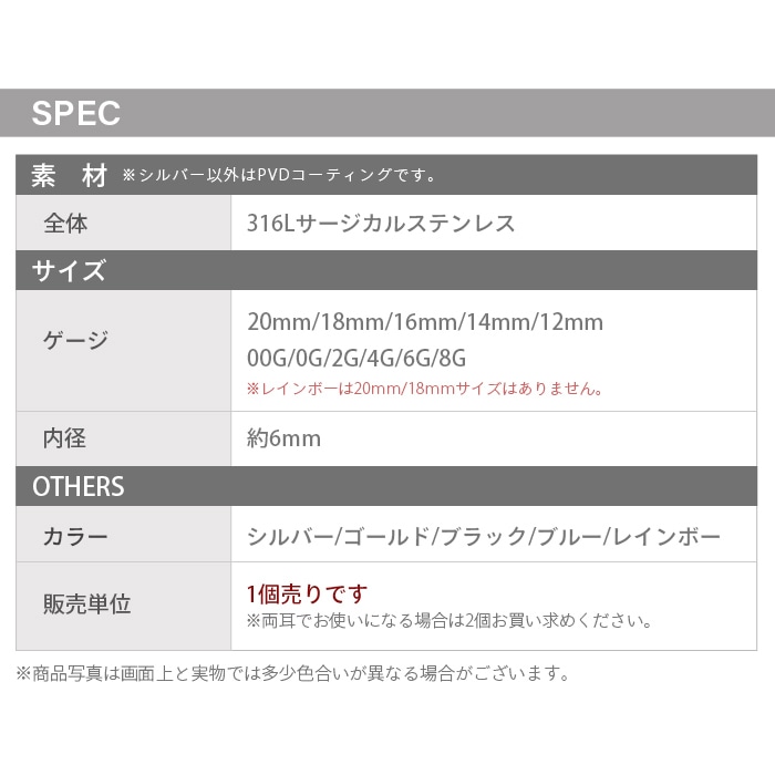 フレッシュトンネル 16mm 14mm 12mm 00G 0G 2G ボディピアス 00g サージカルステンレス 拡張 ラージホール ラージゲージ 耳たぶ イヤーロブ メンズ レディース 金属アレルギー対応 医療用ステンレス e08-53