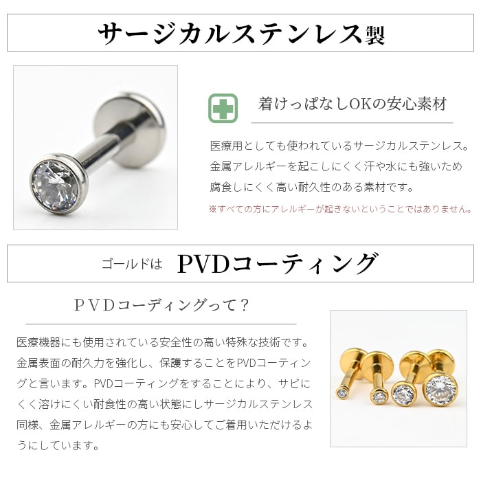 ボディピアス ラブレットスタッド 14G 16G 18G キュービックジルコニア CZ フクリン留め 覆輪 ミニ 極小 シンプル つけっぱなし 耳たぶ 軟骨ピアス トラガス ヘリックス 軟骨 サージカルステンレス 金属アレルギー対応 レディース メンズ セカンドピアス ボディスタイル bodystyle body-style