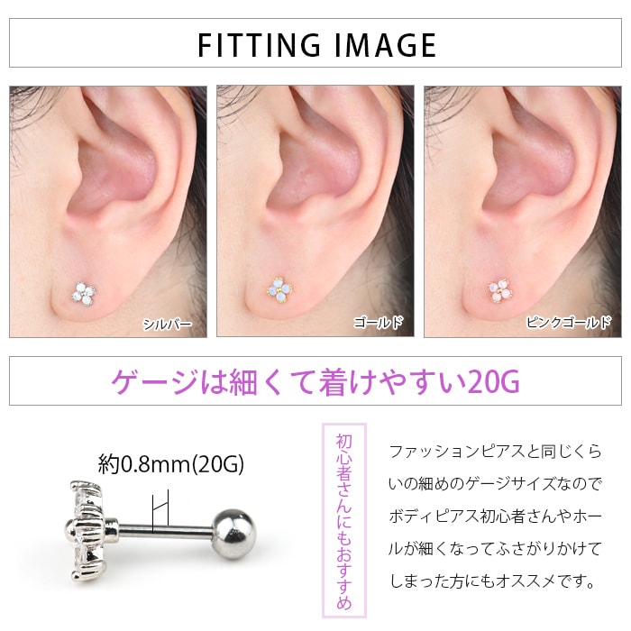 耳たぶ ピアス 16g ボディピアス フラワー 花 ジュエル 14g ストレートバーベル トラガス 軟骨ピアス ヘリックス 耳たぶ p03-10