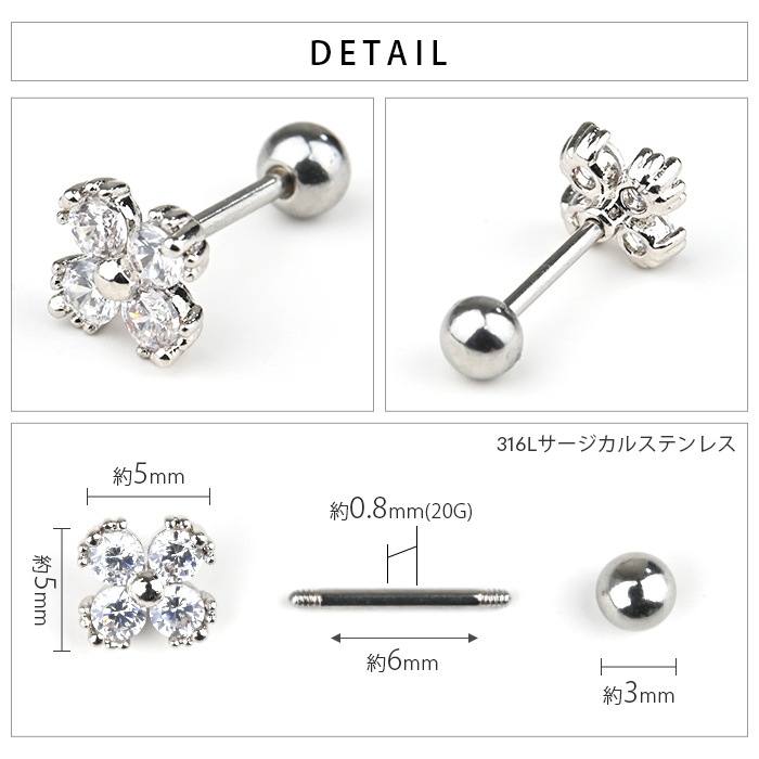 ゲージから探す > 20G > ボディピアス 20G 花 フラワー キュービックジルコニア ストレートバーベル サージカルステンレス 金属アレルギー対応 軟骨用 軟骨ピアス 耳用 イヤー ロブ ヘリックス k03-269