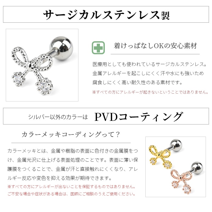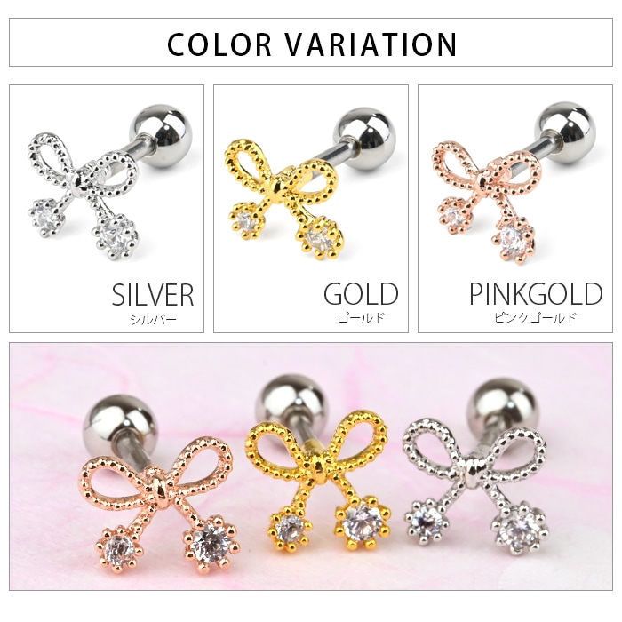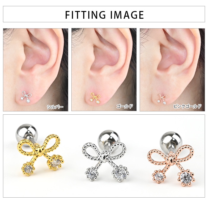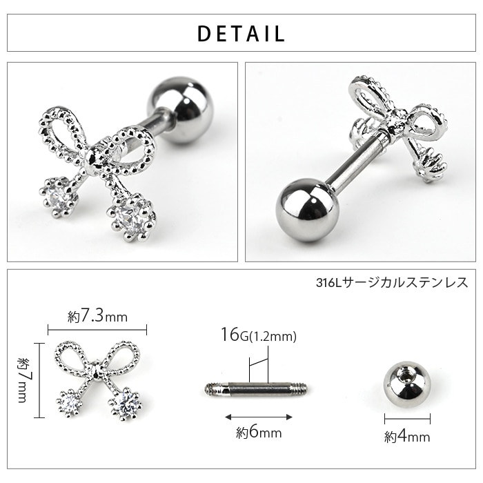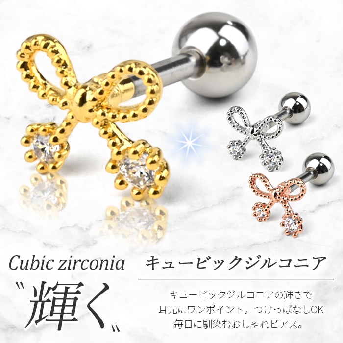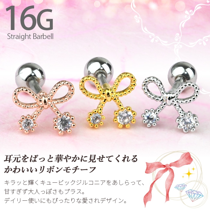 ゲージから探す > 16G > ボディピアス 16G リボン 蝶々結び キュービックジルコニア 可愛い おしゃれ ストレートバーベル サージカルステンレス 金属アレルギー対応 耳たぶ 軟骨ピアス ヘリックス イヤーロブ k03-304