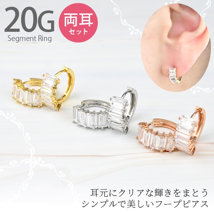 【両耳セット】フープピアス 20g キュービックジルコニア 小さめ 20ゲージ ボディピアス 金属アレルギー対応 リングピアス セグメントリング 耳たぶ リング ピアス かわいい 医療用 ステンレス サージカルステンレス e04-18