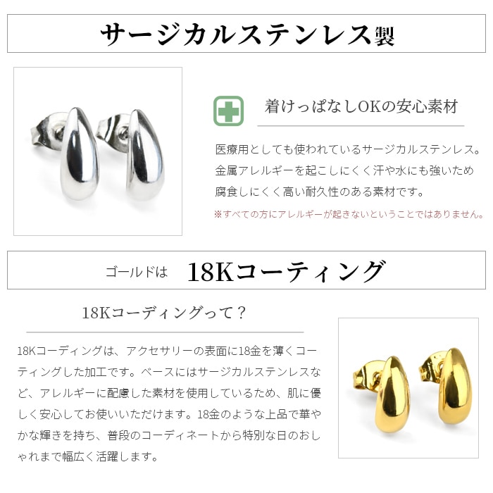 ボディピアス 16G ドロップ 雫 スタッドピアス サージカルステンレス シルバー ゴールド 金属アレルギー対応 シンプル つけっぱなし応 k03-311