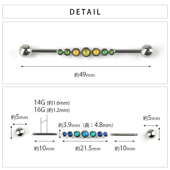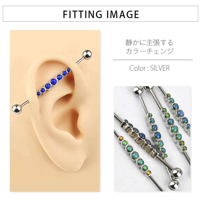インダストリアル ピアス 14g 14ゲージ ボディピアス パール シルバー 軟骨ピアス 耳 ロングバーベル ストレートバーベル ヘリックス レディース メンズ おしゃれ e03-79