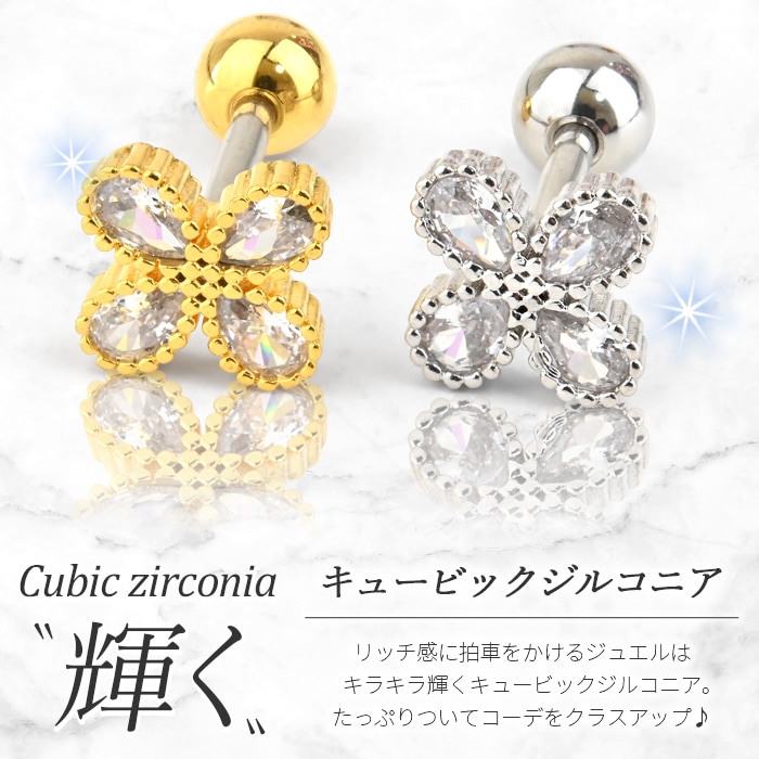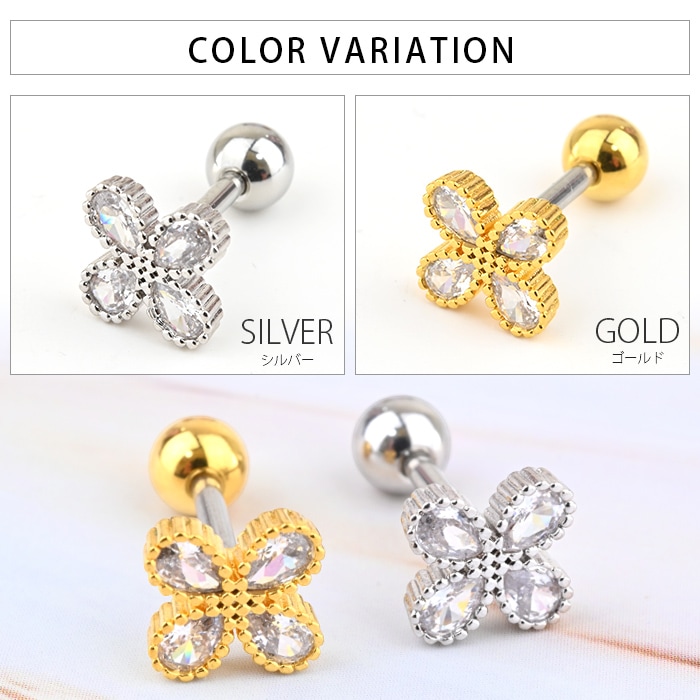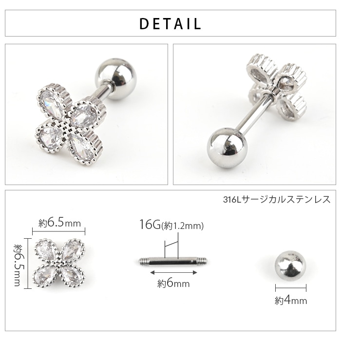 ボディピアス 20G 花 フラワー キュービックジルコニア ストレートバーベル サージカルステンレス 金属アレルギー対応 軟骨用 軟骨ピアス 耳用 イヤー ロブ ヘリックス k03-269
