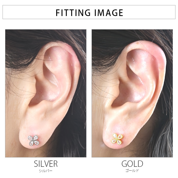 両耳セット ピアス 耳用 イヤーロブ サージカルステンレス 金属アレルギー対応 シルバー ゴールド ピンクゴールド 耳たぶ に 沿う ピアス ジュエル ビジュー 花 フラワー e03-56