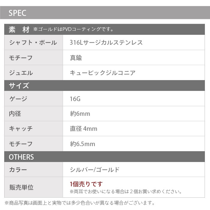 ボディピアス 16G 揺れる コイン キュービックジルコニア ストレートバーベル サージカルステンレス 金属アレルギー対応 耳たぶ イヤーロブ 軟骨ピアス p03-33