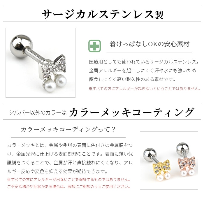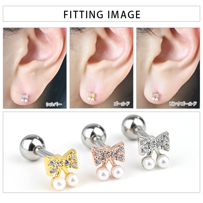 ボディピアス 16G リボン 蝶々結び キュービックジルコニア 可愛い おしゃれ ストレートバーベル サージカルステンレス 金属アレルギー対応 耳たぶ 軟骨ピアス ヘリックス イヤーロブ k03-304