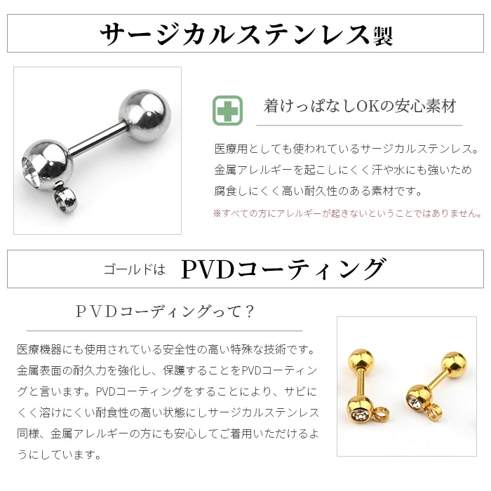 【両耳セット】ファッションピアス ジュエルボール キュービックジルコニア モチーフ付け替え対応 カスタム ストレートバーベル シルバー シンプル サージカルステンレス 金属アレルギー対応 k03-314