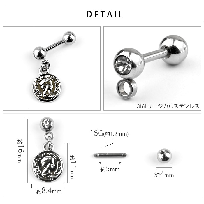 ピアス 16g 14g ボディピアス ねじ プラスネジ 個性派 16g ストレートバーベル トラガス 軟骨ピアス ヘリックス 耳たぶ k03-201