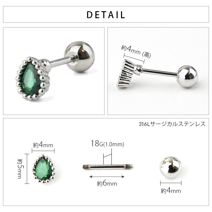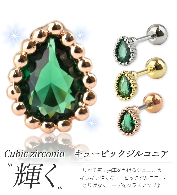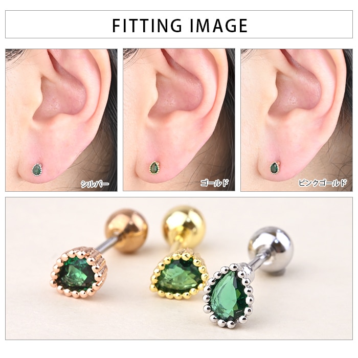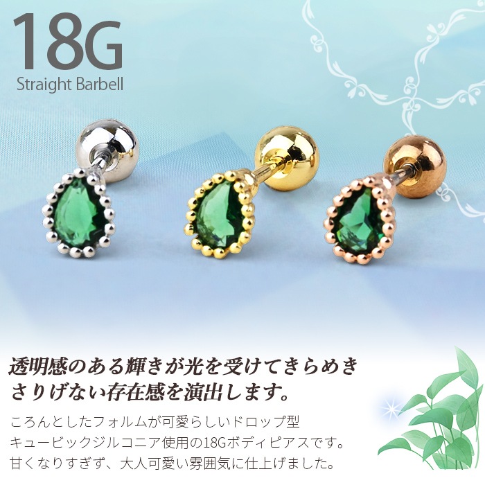 【両耳セット】 ティアドロップ チャーム かわいい 軟骨 イヤー ロブ 耳たぶ トラガス ヘリックス ジュエル ビジュー パール ボディピアス ストレートバーベル トラガス 20g e03-43