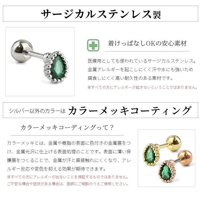 ボディピアス 16G ドロップ 雫 スタッドピアス サージカルステンレス シルバー ゴールド 金属アレルギー対応 シンプル つけっぱなし応 k03-311