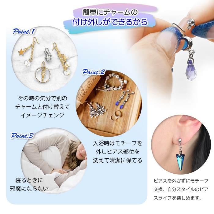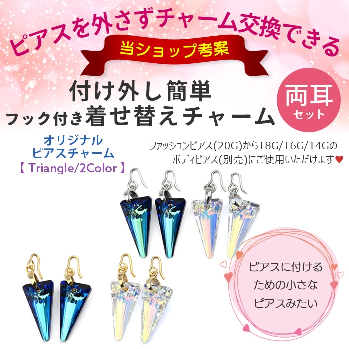【両耳セット】 ボディピアス用チャーム ドロップ クリスタル 雫 カスタム パーツ 20G 18G 16G 14G対応 揺れるピアスチャーム p13-02