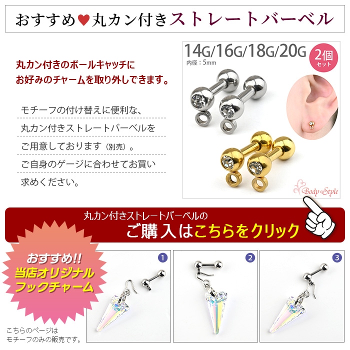 耳たぶ ピアス 16g ボディピアス ジュエル 左右別売り ストレートバーベル トラガス 軟骨ピアス ヘリックス 耳たぶ k03-38