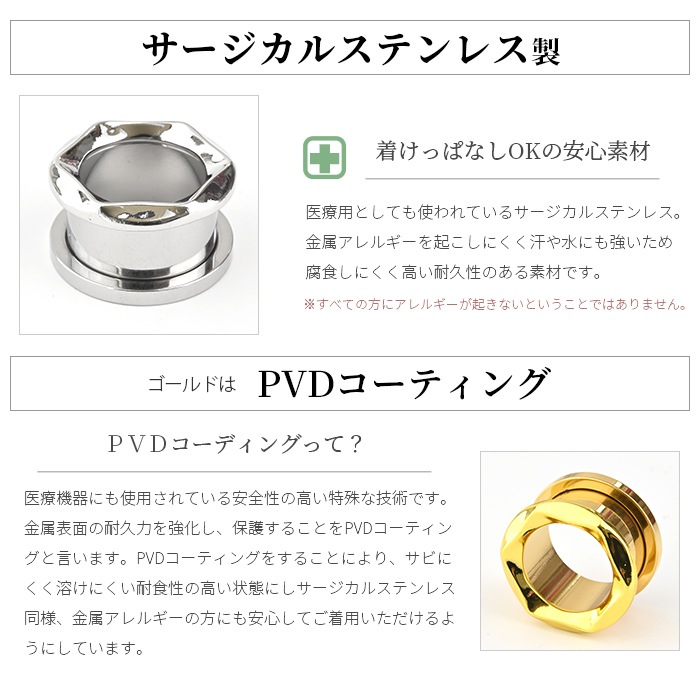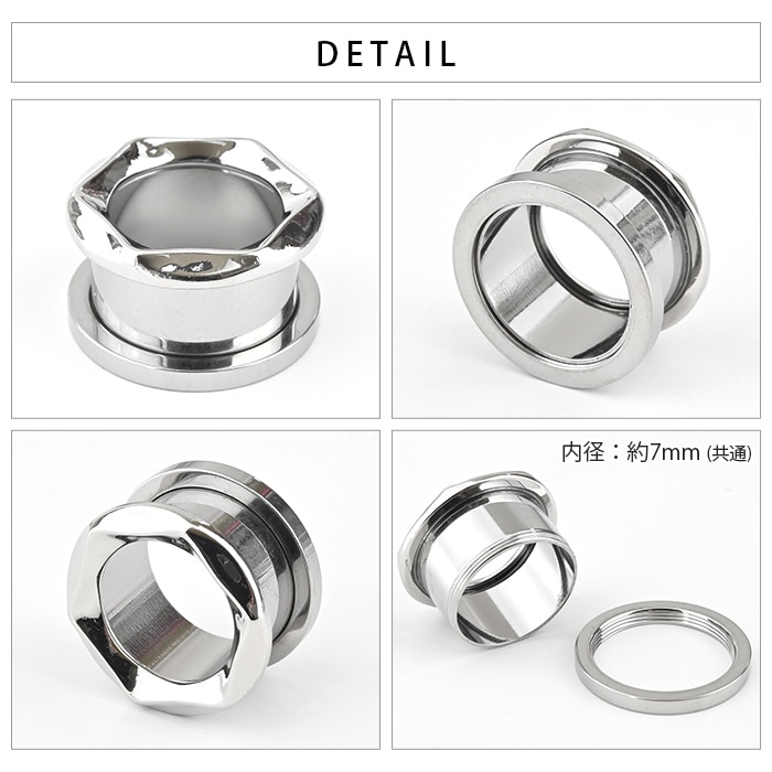 トンネル ボディピアス 0g 2g 4g 拡張 ラージホール ラージゲージ シルバー 耳たぶ イヤーロブ メンズ レディース 金属アレルギー対応 医療用ステンレス フレッシュトンネル ネジ式 おしゃれ e08-19