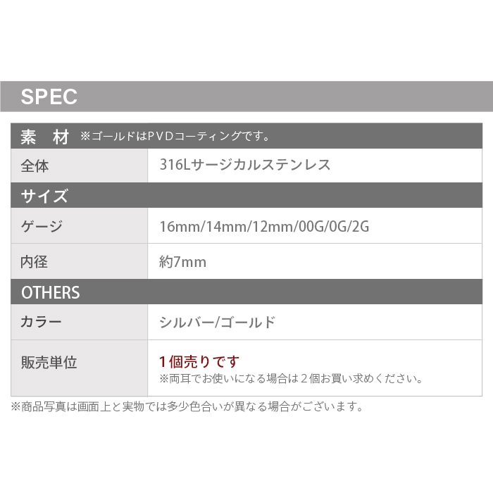 フレッシュトンネル 16mm 14mm 12mm 00G 0G 2G ボディピアス 00g サージカルステンレス 拡張 ラージホール ラージゲージ 耳たぶ イヤーロブ メンズ レディース 金属アレルギー対応 医療用ステンレス e08-53